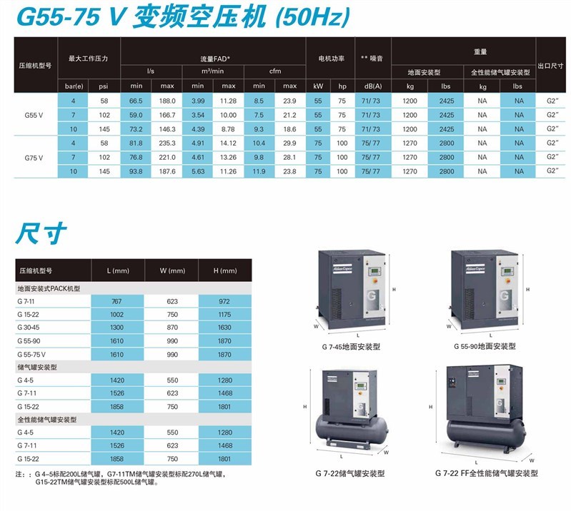 阿特拉斯·科普柯新型的G 4-90/G 55-75 V系列秉承阿特拉斯·科普柯一貫的客戶(hù)承諾,為廣大中小型用戶(hù)提供強(qiáng)動(dòng)力、高可靠性的螺桿式壓縮機(jī)。